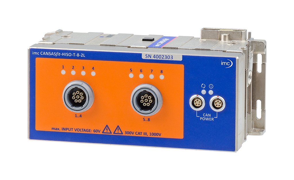 The neue CAN-basierte Temperatur-Messmodul imc CANSASflex HISO-T-8-2L setzt neue Maßstäbe in Bezug auf formale Spezifikation, Sicherheit und Messgenauigkeit, es ist isolationsfest bis zu 1400V für Hochvolt-Testumgebungen in denen mit über 800V Spannung getestet wird.