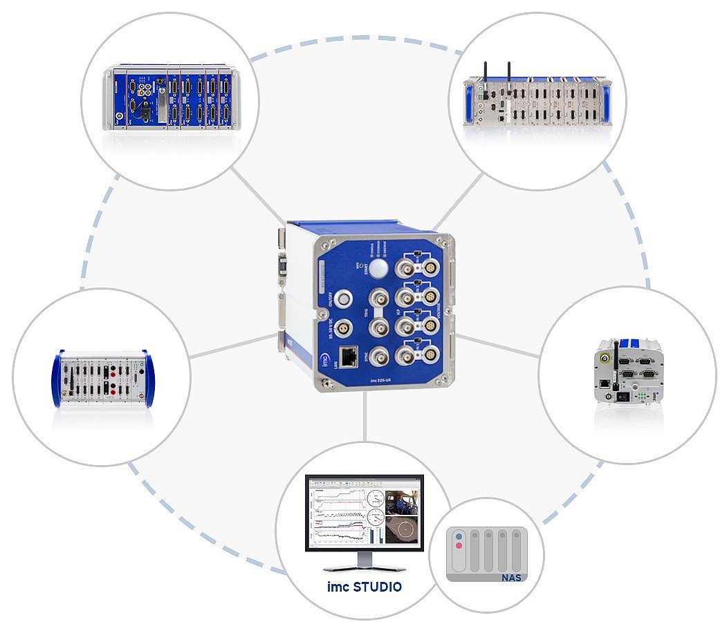 如今,业界对测试和测试环境的要求在持续增加。除了采集经典的机械和物理量(例如应变,压力,温度和电压),以及过程控制,现场总线和其他变量之外,还越来越需要获取高分辨率的快速信号。这样的场景包括ECU控制信号,高动态范围传感器和执行器或电磁子系统。示波器是过去经常使用的解决方案,常常无法满足以上这些高要求。而要满足现如今的"高要求", 这需要一套功能全面的、非常精确的测量系统。例如:远高于12位的高分辨率数模转换,集成各种传感器信号调理器,并将其无缝嵌入到一个同时集数据采集,显示,关联和分析所有相关量于一身的综合系统中。这就要求采用新的测量方法,同时将“慢速”和“快速”数据采集整合在一起。使用imc EOS,就像孩子们搭积木一样,可以方便地与其他imc数采系列组合,因为所有imc测量系统都是同步工作的。